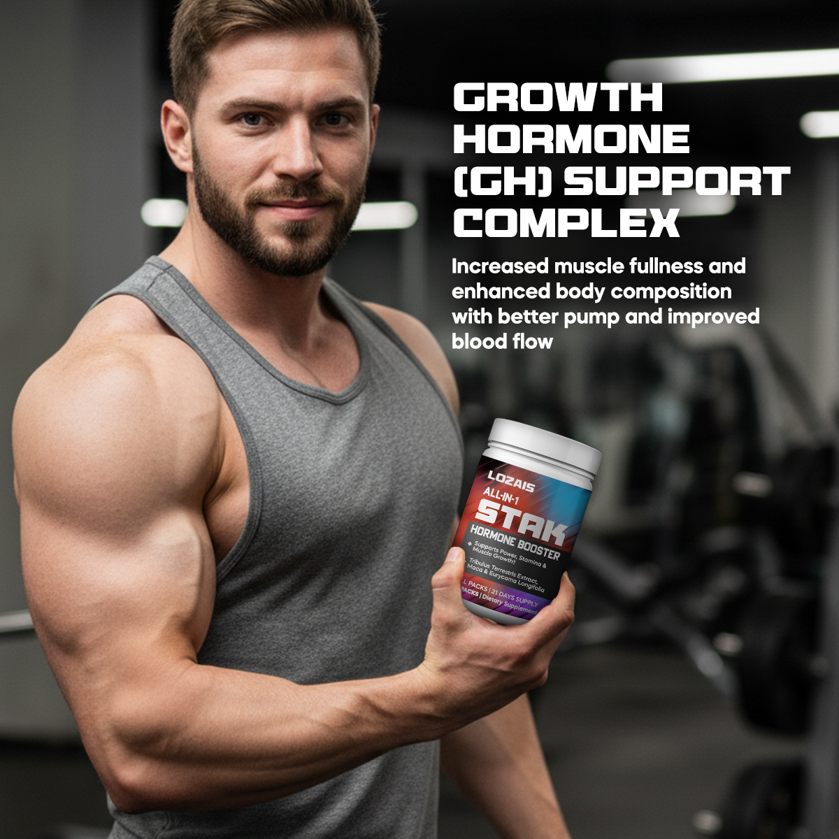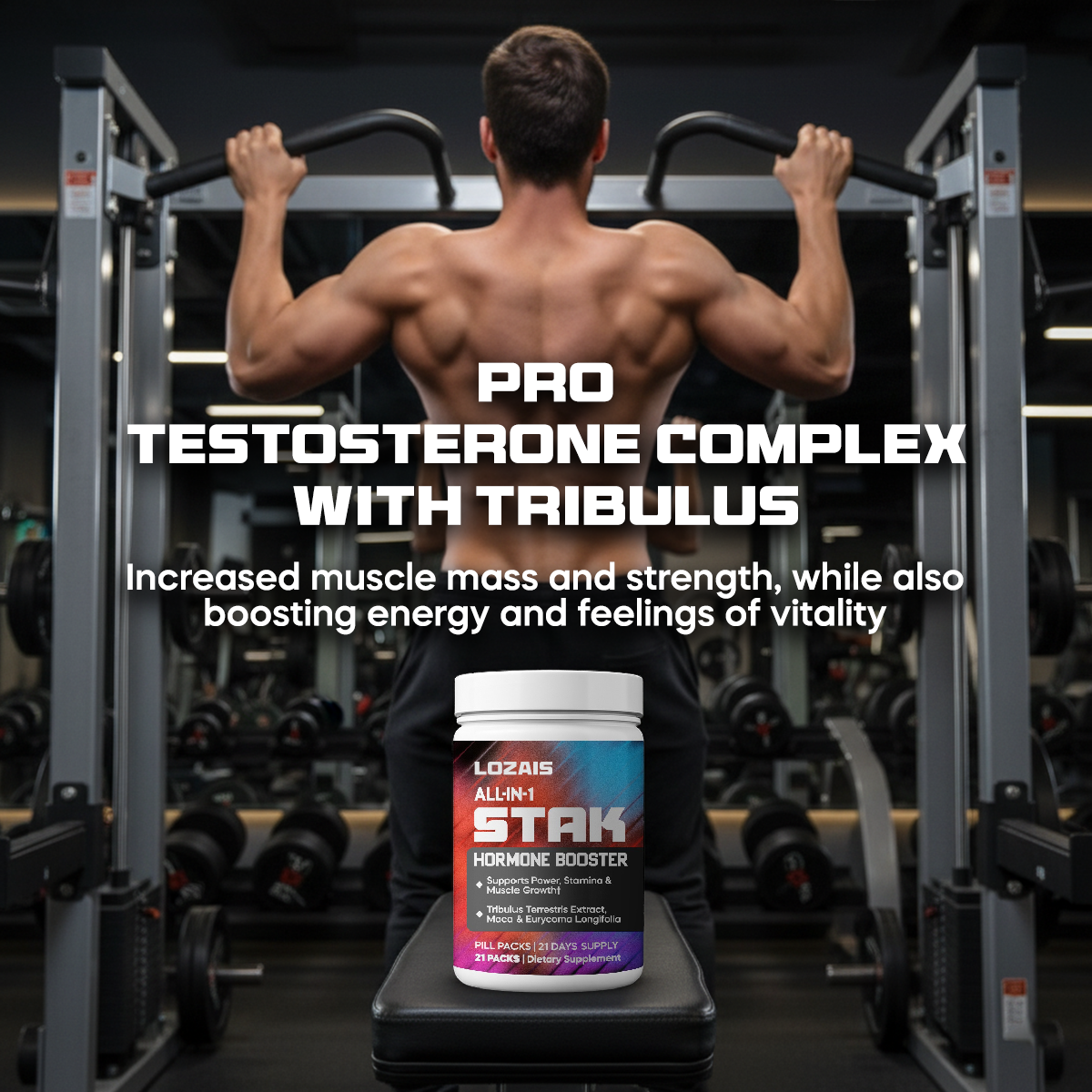 Lozais Stak is developed for the bodybuilder and elite strength athlete that is looking to break through plateaus and personal records. Our formula includes five unique complexes that will help you boost natural testosterone levels and elevated growth hormone support to give you increased muscle mass, strength, energy, and vitality including:
